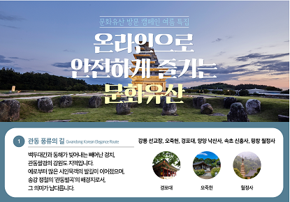 한국문화재재단(이사장 최영창)은 문화재청(청장 김현모)과 함께 2021년 ‘문화유산 방문 캠페인’을 개최한다고 밝혔다. 이 캠페인은 코로나19 상황의 어려움 속에서도 우리 ‘문화유산의 힘’을 기반으로 누구나 안전하게 휴가시즌을 즐길 수 있는 다양한 온라인 프로그램으로 구성된다.