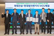 사전 제작‧조립 방식의 ‘탈현장(OSC) 공법’ 확대로 건설업 품질‧안전‧환경 확보 박차 현대건설이 공동주택 단지에 모듈러 승강기를 도입하며, 건설 현장 안전과 품질 제고에 박차를 가한다. 현대건설은 지난 2일 서울 종로구에 위치한 계동 본사에서 현대엘리베이터와 ‘공동주택부문 모듈러 E/V 도입 및 기술협력’을 위한 업무협약(MOU)을 체결했다. 협약식에는 현대건설 윤정일 구매본부장과 현대엘리베이터 조재천 대표이사 등 양사 주요 관계자들이 참석했다. 모듈러 승강기는 주요 부품을 공장에서 사전 제작하여 현장에서는 조정 작업과 내·외장 마감 등만 진행하는 공법으로, 공사 기간을 단축하는 것은 물론 시공 과정의 안전성이 높아 혁신 솔루션으로 평가받고 있다. 현대건설은 이번 협약을 통해 현대엘리베이터와 모듈러 승강기의 기술 개발과 성능 개선에 협력하는 것은 물론 공동주택 현장 적용을 위한 건축물 구조 및 설계, 파일럿 현장 설치 등을 지원하기로 약속했다. 특히 양사는 업무협약에 앞서 지난 8월 힐스테이트 이천역에 저층용 모듈러 승강기를 시범 설치하고 한국승강기안전공단의 검사필증을 획득한 바 있어, 향후 실증 결과를 토대로 한 성능 개선과 국내 최초 상용화에 더욱 속