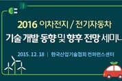 (주)첨단과 한국산업기술협회가 12월 18일(금) 가산동 한국산업기술협회 컨퍼런스센터에서 “2016 이차전지/전기자동차 기술 개발 동향 및 향후 전망 세미나”를 개최한다. 이번 세미나는 미래에셋증권 이학무 연구위원의 ▲ 2016 전기자동차 핵심부품 기술 개발 동향 및 산업 향후 전망을 시작으로 한국과학기술원 최장욱 교수의 ▲전기차 웨어러블/플렉서블용 배터리 플레이어별 제조 기술 개발 동향 및 향후 전망, 전자부품연구원 유지상 박사의 ▲ 미래 전기차를 위한 차세대 배터리 기술 개발 동향 및 향후 전망, 한국전지산업협회 김유탁 팀장의 ▲ 2016 이차전지 시장동향/전망 소재 기술 개발 동향 및 향후 전망, 자동차부품연구원 현정은 선임의 ▲ 전기자동차용 이차전지의 표준화 연구 기술 개발 동향 및 향후 전망, (주)아이티엔지니어링 김영한 상무의 ▲ 보급형 소형 전기자동차 기술 개발 동향 및 향후 전망, 한국과학기술원 전양배 팀장의 ▲ 무선충전 전기자동차의 표준화 동향과 기술 개발 동향 및 향후 전망, 전기자동차인프라네트워크 조성규 소장의 ▲ 초저비용 전기자동차 충방전 인프라 기술 개발 동향 및 향후 전망 등 총 8개 세션으로 나누어 진행된다.