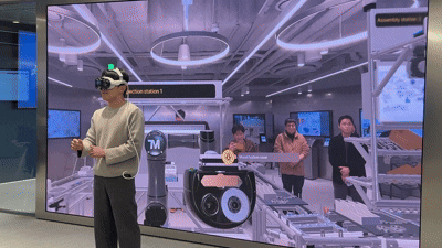 이 자리에서는 설비, 생산 라인, 항공기 객실 등을 사용자의 1인칭 시점에서 큰 화면에 띄워 참관객들의 이해를 도왔다. 이러한 사용자 시점 화면 구성은 설비 점검, 작업자 교육, 의사결정 과정을 어떻게 바꿀 수 있는지 시험해 보는 인터페이스 실험이다. 앞서 언급한 데이터와 현장 화면 사이의 간극을 줄이려는 움직임이 어느 지점까지 와 있는지 보여준 사례로 주목받았다.