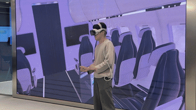항공기 객실을 예시로 한 화면도 도출됐다. 제품 사양과 인테리어를 결정하는 과정에 센스 컴퓨팅을 적용한 사례다. 현장 내 비전 프로 화면에는 비행기 내 비즈니스·이코노미 클래스가 실제 크기에 가깝게 펼쳐졌다. 이때 사용자는 좌석 배치, 통로 폭, 조명 색상, 마감재 등 다양한 요소를 조정할 수 있다. 여기에 객실을 실제처럼 걸어 다니며 둘러볼 수도 있다.