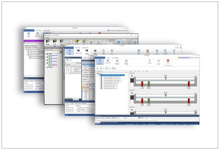 EzWorks는 현장 작업자를 고려한 직관적 설정 툴이다. IO와 모션 환경을 GUI 기반에서 간단히 설정·테스트할 수 있으며, 최소한의 키보드 입력만으로도 구동 가능해 설치와 유지보수 시간을 단축할 수 있다.