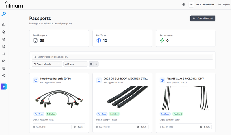 IBCT는 국내 유일의 카테나엑스 인증 DPP 플랫폼 인피리움을 통해 수출 제조기업의 글로벌 규제 대응과 원청사 데이터 제출 요구를 지원하고 있다. 인피리움은 복잡한 글로벌 공급망 데이터를 표준화해 연결하고, 디지털제품여권 발행 과정을 간소화한 SaaS 플랫폼이다.