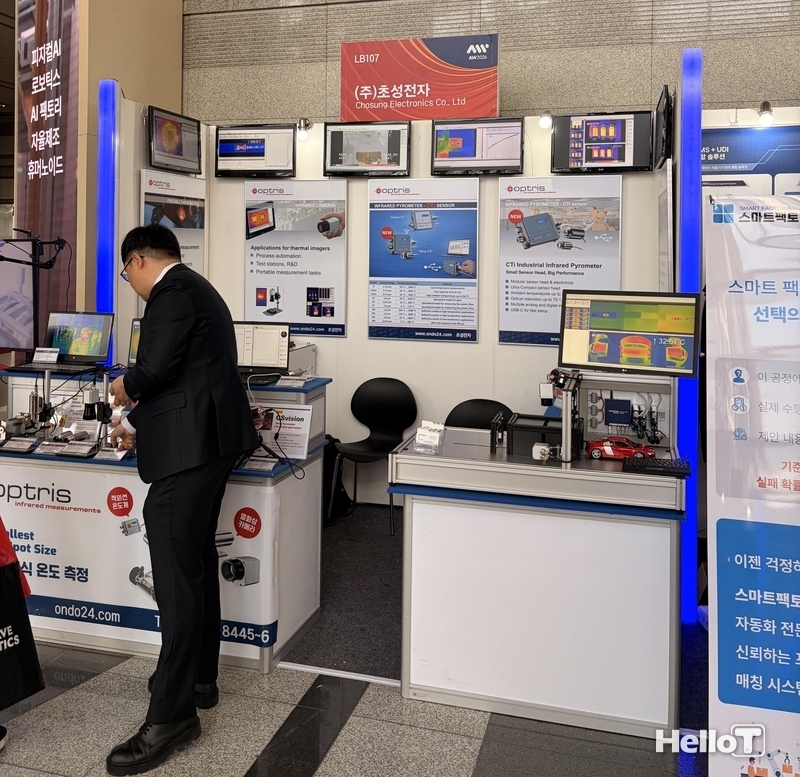 (주)초성전자가 '스마트공장·자동화산업전 2026(Automation World 2026, 이하 AW 2026)'에 참가해 독일 옵트리스(OPTRIS)의 첨단 비접촉식 적외선 온도계 및 열화상 카메라를 선보였다.