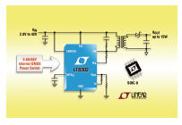 절연형 DC/DC 컨버터의 설계를 단순화시켜 주는 모놀리식 플라이백 레귤레이터(LT8302)는 2.8V∼42V의 입력 전압에서 동작하며 3.6A/65V의 전력 스위치를 갖고 있다. 그리고 최고 15W의 출력 전력을 제공하므로 산업, 의료, 군사, 자동차 등 다양한 범위의 애플리케이션에 적합하다. 이 제품은 또한 가변 주파수 전류 모드 제어 스위칭 방식으로 전체 라인, 부하 및 온도 범위에서 ±5%typ의 레귤레이션을 제공하는 바운더리 모드로 동작한다.