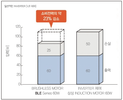그림 6. BLDC와 인버터의 소비전력 비교