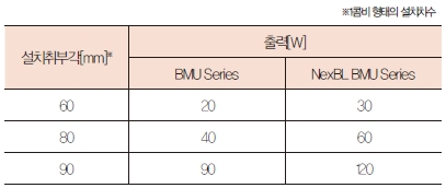 표 1. NexBL BMU 시리즈 출력