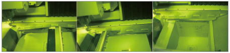 전용 금속분말 계량-Base Plate 세팅-분말 도포(0.05mm/층)-레이저 소결-반복 적층조형-NC 가공-주변 분말 제거(재활용)-후가공(Base plate와 부품 분리)-검사-완료
