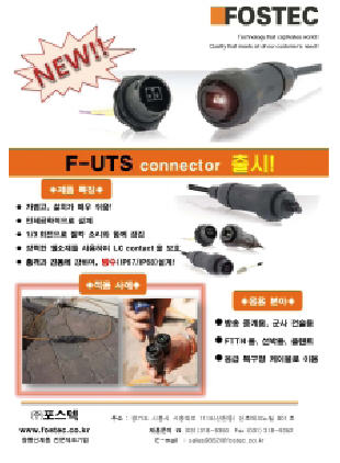 F-UTS connector는 강력한 쉘 소재를 사용해 LC contact를 보호하며, 충격과 진동에 강한 고강도 케이블 고정이 가능하다. 가볍고 설치가 쉬우며, 방수(IP67/IP68) 설계돼 부식을 방지한다. F-UTS connector는 방송 중계용, 군사 전술용, FTTH용, 선박용, 플랜트, 응급 복구형 케이블 등에 다양하게 적용될 수 있다.