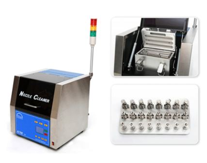 KC700은 24개 노즐의 동시 세척으로 노즐당 30초의 빠른 세척 시간을 갖는다. 다양한 노즐 대응이 가능한 탈착식 홀더를 장착했으며, LCD 창을 통한 간편한 조작이 가능하다. 노즐 오염도에 따라 부위별 세척과 건조시간을 설정할 수 있고, 타워램프 적용으로 작동 상태를 확인하는 것이 용이하다. 라인 정지를 감소시켜 공장 불량과 인원을 절감해 생산성을 극대화시켜 준다.