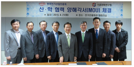 기초연과 진흥회는 지난 4월 21일(화) 전기진흥회관 대회의실에서 양 기관 대표가 참석한 가운데 산·연 협력 양해 각서(MOU)를 체결하고 산·연 연계 R&D 비즈니스 모델 창출 및 실무 협의체 구성 등 실질적 교류 협력 사항의 이행을 약속했다.