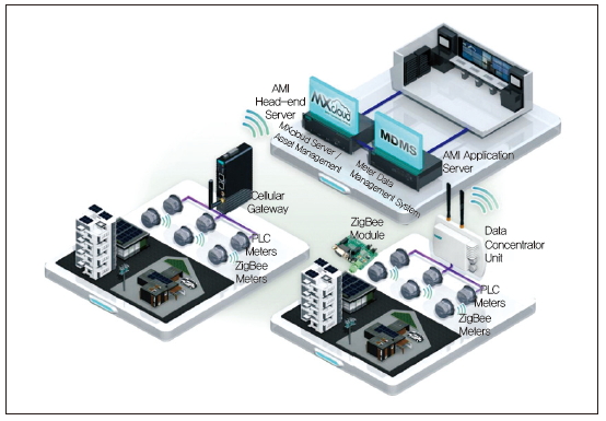 사진 1. 산업용 사물인터넷 AMI 솔루션은 다양한 유형의 셀룰러 게이트웨이, 데이터 콘센트레 이터 유닛, 헤드엔드 서버 제품들을 이용해 개별 소비자 디바이스 수준으로까지 에너지 사용량의 측정, 분석, 최적화를 가능하게 한다.