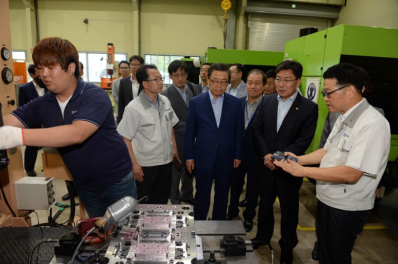 산업통상자원부 윤상직 장관은 7월 13일, 창조경제혁신센터를 거점으로 제조업 혁신이 확산되고 있는 현장을 점검하기 위해 경북창조경제혁신센터 및 스마트공장 구축업체인 신흥정밀을 방문했다.