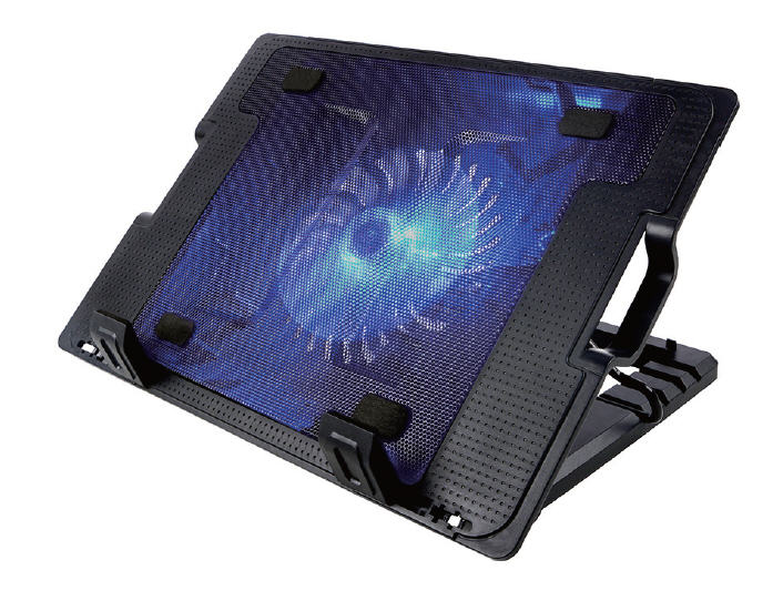 노벨뷰의 NVV900은 시원한 외부 공기를 노트북에 충분히 제공하는 140mm의 대형 블루 LED 쿨링팬이 기본 장착되어 있는 노트북 쿨러이다.