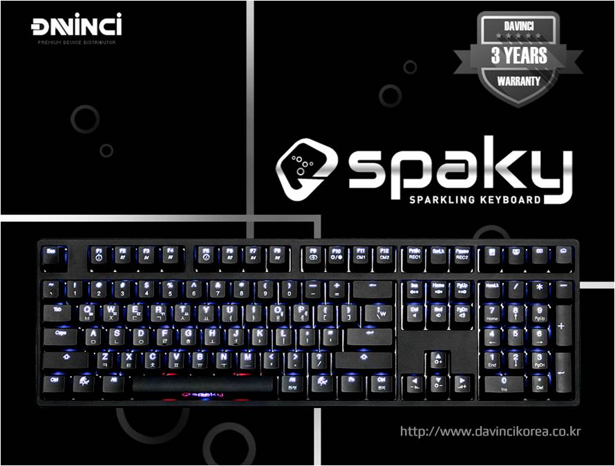 컴퓨터 주변기기 전문 수입유통업체 다빈치인터내셔널은 글로벌 키보드 유명제조사인 더키채널(Ducky channel)과 합작으로 스파키(SPAKY) 브랜드 론칭과 함께 스파키 화이트 LED 기계식 키보드를 출시한다.