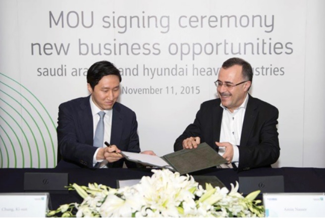 현대중공업은 지난 11월11일 사우디 현지에서 정기선 기획실 총괄부문장, 조선사업 김정환 대표, 플랜트사업 박철호 대표 등이 참석한 가운데 사우디 아람코와 포괄적인 전략적 협력관계 구축을 주요 내용으로 하는 MOU를 체결했다.
