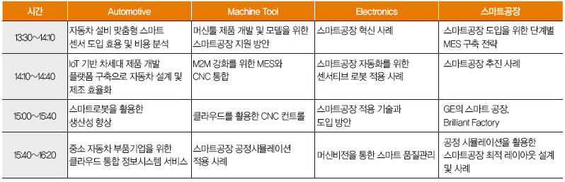 ▲ 표 1. 2016 스마트공장 국제컨퍼런스 (3월9일)