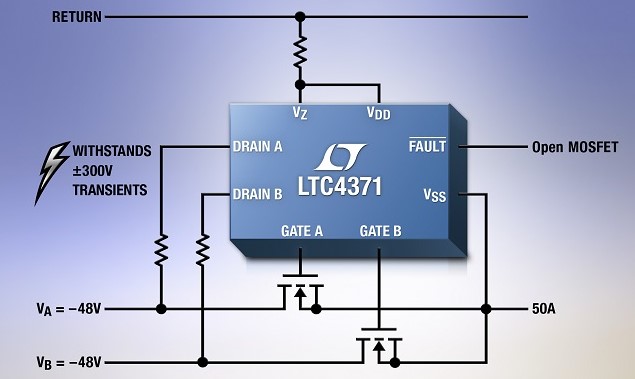 리니어 테크놀로지 코리아(대표 홍사곽)는 듀얼 피드(dual feed) 고전력 텔레콤 및 데이터콤 보드를 위한 다이오드OR 컨트롤러(제품명: LTC4371)를 출시했다.