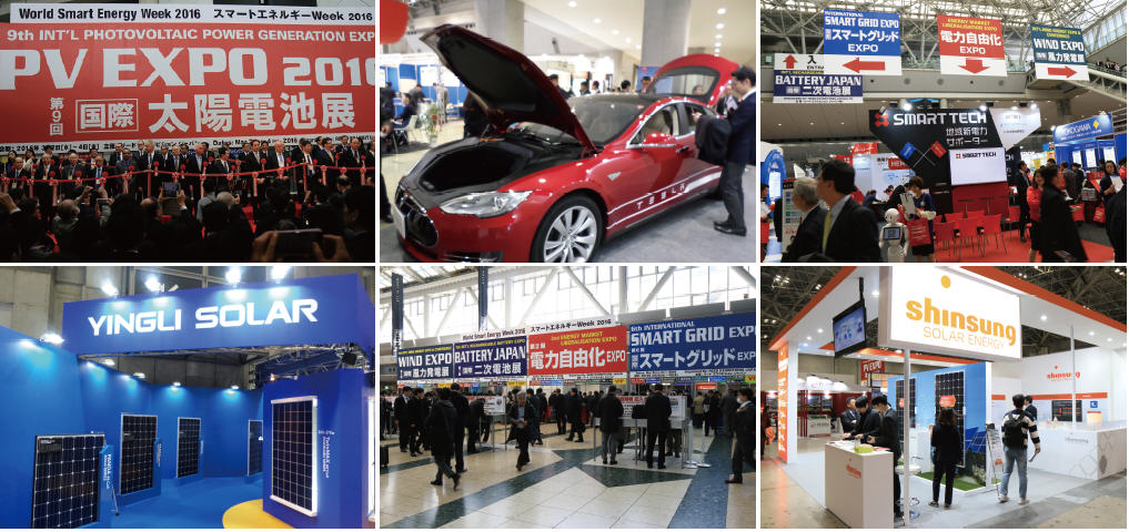 월드 스마트 에너지 위크(World Smart Energy Week) 2016이 지난 3월 2일부터 4일까지 3일간 일본 도쿄 빅사이트에서 개최됐다. 이번 전시회는 일본 국제 태양광 발전 엑스포(PV EXPO)를 비롯해 ▲태양광발전시스템 시공 ▲수소 연료전지(FC EXPO) ▲이차전지(배터리 재팬) ▲풍력발전 ▲스마트그리드 ▲에코 하우스&빌딩 ▲에너지 시장 자유화 ▲바이오매스(생물체에서 얻는 메탄가스나 에탄올 등 에너지 연료) 등 모두 9개의 세부 전시회로 구성됐다.