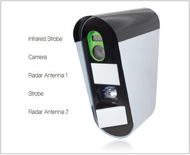 그림 3에 보이는 아키텍처는 그림 4의 과속 및 적색 교통 신호등 위반 검출을 위한 교통 감시 장치에 사용된다. 윗부분에 장착된 GT20 교통 카메라는 비디오 녹화를 위해 현장에 빛을 비추는 적외선 스트로브와 동기화된다. 실리콘 기반 센서의 감도(양자 효율)는 870nm의 파장으로 다소 낮다. 그러나 IR 스펙트럼의 우수한 LED 조명을 제공하므로 모든 조명 조건에서 지나가는 차량에 대한 빠른 비디오 녹화 캡처에는 충분하다. 레이더 장치는 레이더 아래에 배치되며, 지나가는 차량 12대의 속도와 위치를 동시에 결정할 수 있다. 제논 플래시는 정지 영상을 위한 추가적인 조명 소스를 제공한다. 비디오 프레임은 적외선 플래시에 의해 비추어지므로 교통과 주변 환경에 대한 교란을 피할 수 있다.