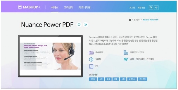 이번에 실시되는 PowerPDF 제품의 클라우드 서비스는 뉘앙스사의 문자인식, 음성인식 기술을 기반으로 설계된 Power PDF를 고객의 다양한 요구에 맞게 사용할 수 있도록 제공하고, 경제적인 가격에 운용할 수 있도록 했다.