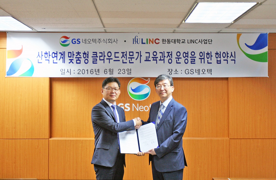 GS네오텍은 23일 GS네오텍 본사에서 한동대학교와 산학연계 맞춤형 클라우드 전문가 교육과정 운영을 위한 업무협약(MOU)을 체결했다.