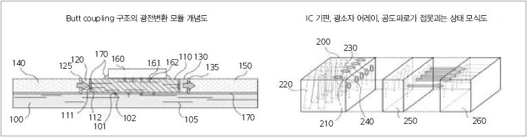 이러한 문제를 해결하기 위해 KETI는 전기-광배선 PCB 기술을 개발했다. PCB 내 광인터커넥션을 위한 새로운 구조물의 전기-광패키지로, 반도체 칩이 실장된 IC 기판의 측면에 광소자 어레이를 접합하고, 광소자 어레이의 타측에 광도파로 어레이를 광 접속되도록 접합시켰다.