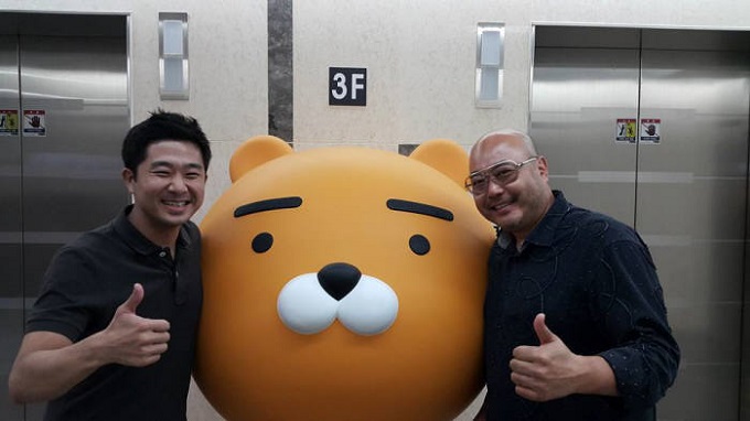 민경훈 구글플레이 게임·앱 비즈니스 총괄(왼쪽)이 지난 6일 카카오게임즈를 찾아 남궁훈 카카오게임즈 대표와 기념촬영을 하고 있다. 2016.9.7.뉴스1© News1