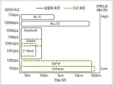 ▲ 그림 1. IoT 통신 기술 표준 비교 (자료: Mckinsey)