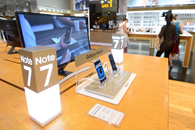 ▲ 서울 서초구 삼성전자 서초사옥 딜라이트샵에 갤럭시노트7이 전시되어 있다. 뉴스1 © News1 박재만 인턴기자