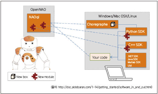 최근 로봇 SW 플랫폼(이하 로봇 플랫폼)의 중요성이 더욱 부각되고 있다. 로봇 플랫폼이란 다양한 로봇 애플리케이션의 기반 환경(개발 환경과 구동 환경)을 제공하는 플랫폼을 의미한다. 로봇 플랫폼은 자신의 기능을 SDK(Software Development Kit) 및 API(Application Programming Interface)로 제공한다.