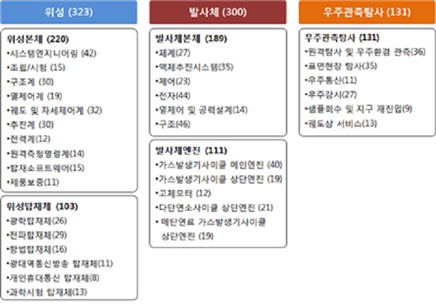 ▲ 우주개발 수요기술 현황 [자료=미래창조과학부]