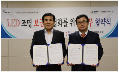 LED산업협동조합이 LED산업포럼과 손잡고 LED 조명 보급을 활성화하기 위해 적극 나선다. 한국전등기구LED산업협동조합(이사장 박현주)과 LED산업포럼(위원장 이상희)은 지난 11월 2일, 조합 이사장실에서 ‘LED 조명 보급 활성화를 위한 업무 협약식’을 개최했다.