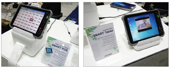 이트론은 이번 ‘2016 한국전자전’에 국내 기술로 제조 및 생산하는 Smart POS(ET-ST110C) 및 Tablet(ET-ST110)를 전시했다. Smart POS는 Smart Table를 기반으로 확장한 모델로 귀여운 디자인과 작은 사이즈임에도 다양한 확장성을 갖추고 있다. 특히, Smart Table를 기반으로 한 도킹스테이션을 통해 바코드 리더기 및 프린터 등의 연결로 확장된 기능을 제공해 백화점, 편의점, 프랜차이즈 매장에서 활용이 가능하며 무선 및 블루투스 지원으로 이동성까지 갖추고 있다. 또한, Smart POS는 무선 인터넷을 지원으로 매장과 제품에 대한 판매 실적 및 경향을 실시간으로 장소에 구애받지 않고 확인할 수 있으며 다양한 형태로 활용이 가능하도록 제작됐다.