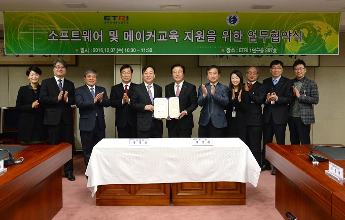 ▲ ETRI-대전광역시교육청, '소프트웨어 및 메이커교육 지원'을 위한 업무협약식