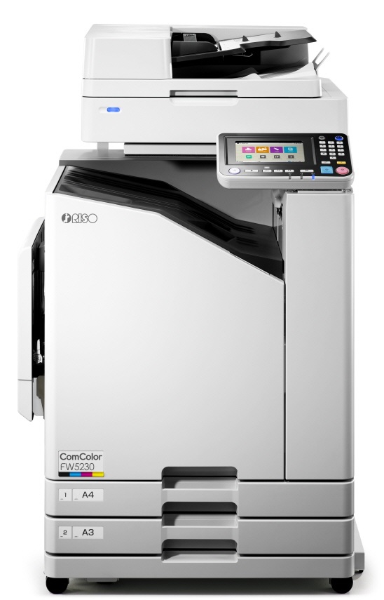 ‘FW5230’의 새로운 터치 패널은 컬러 아이콘으로 구성되어 직관적인 조작이 가능하고, 틸트 방식으로 90도까지 각도 조절이 가능해 사용자의 다양한 환경에 맞게 사용할 수 있다. 모바일 프린트 애플리케이션(RISO Print-S)을 통해 스마트기기에서도 바로 출력이 가능하다.