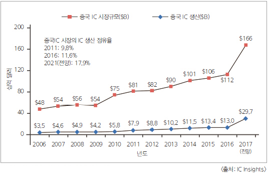 ▲ 그림 1. 중국 IC 시장 vs. 중국 IC 생산 트렌드
