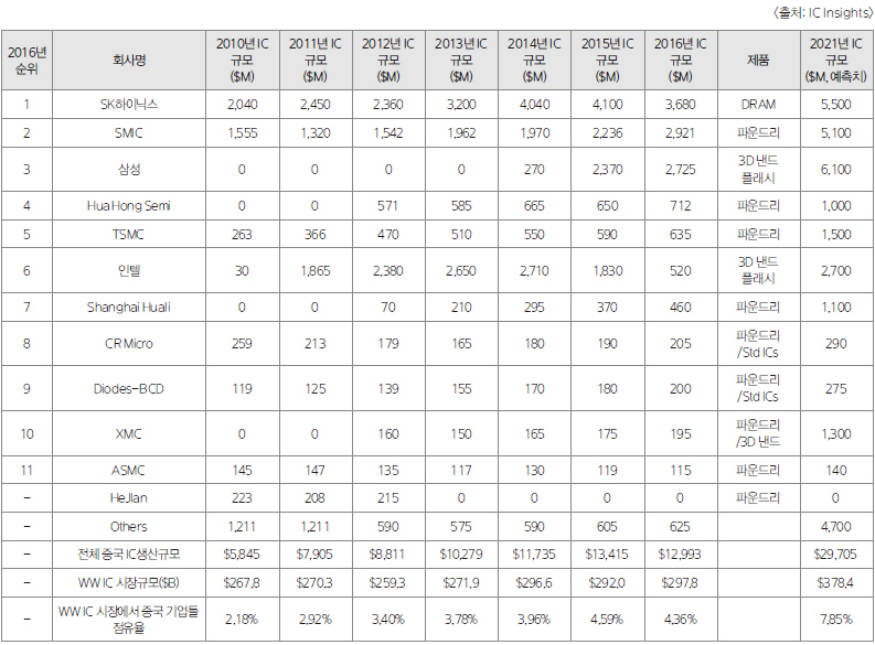 ▲ 표 3. 중국 내 주요 IC 제조업체
