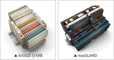 오토메이션 월드를 통해 maxGUARD 전자식 차단기와 A-series 단자대를 만나볼 수 있다. maxGUARD는 기존 열동형 차단기의 단점을 극복한 전자식 차단기로서, 바이메탈방식이 아닌 션트 저항을 사용한 마이크로프로세서 동작 방식이 특징이다. 이 제품은 와이어 길이 등으로 인한 저항에 영향을 받지 않고 전기식 제어가 자유로워 원방 On, Off 및 알람, 과전류 경고 등의 모니터링 및 제어가 가능하다.