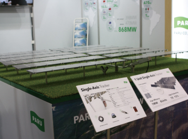 태양광 가대를 전문으로 설치하는 업체인 파루는 이번 PV EXPO에서 동서방향, 양방향으로 움직이는 다양한 태양광 가대 솔루션을 소개했다. 미국 알리모에서 470MW 규모의 큰 공사 경험을 비롯해 국내 및 해외에서 다수의 사업 경험이 있기 때문에 기술적 능력은 이미 검증된 상태. 파루는 이번 전시를 통해 지금까지 소규모 공사만 진행해 왔던 일본 시장에서 대규모 공사 진행을 모색하고자 한다.