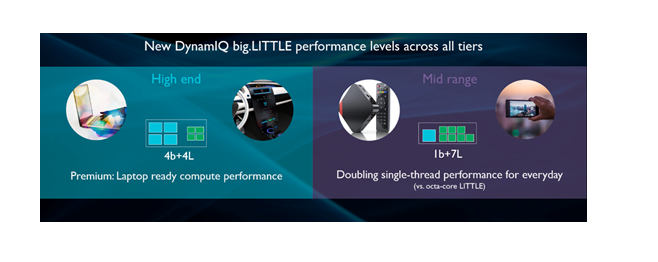 다이내믹 빅리틀이 제공하는 유연성은 분산 지능이 요구하는 시스템 수준 접근 방식의 핵심이다. 유연한 CPU 클러스터, GPU 컴퓨팅 기술, 전용 가속기에 ARM 컴퓨팅 라이브러리를 결합하면 AI 성능을 크게 향상시킬 수 있다고 회사측은 강조했다.