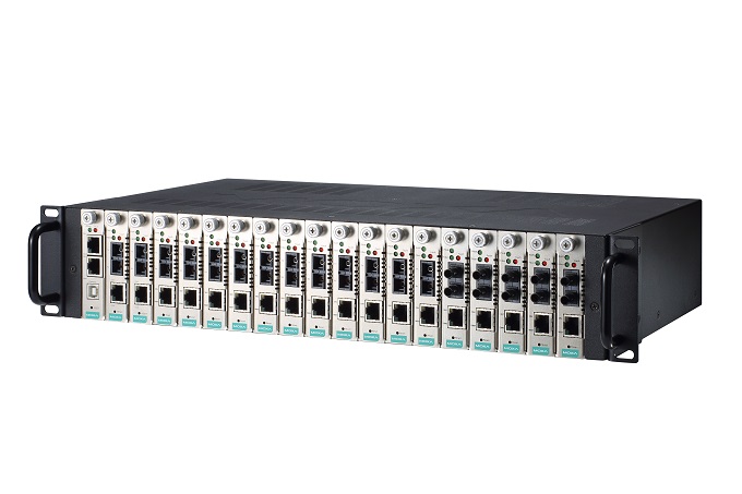 Moxa가 승객 정보 시스템 및 첨단 교통 관리 시스템과 같은 고밀도 애플리케이션용 랙탑재 새시 미디어 컨버터(rackmount chassis media converter)를 출시했다.