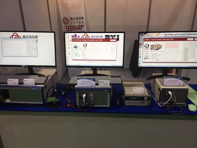 뿐만 아니라 이번 전시회에서는 내쇼날 인스트루먼트(NI)의 최대 ‘Gole Alliance Partner’였던 JX 인스트루먼트(구 VI Sevice Network)사에서 제공한 자동차 오디오 테스트(Car audio test) 및 자동차 스타트 전압(Car starting voltage) 데모를 전시해 전시를 찾은 많은 고객들의 호응을 얻었다.