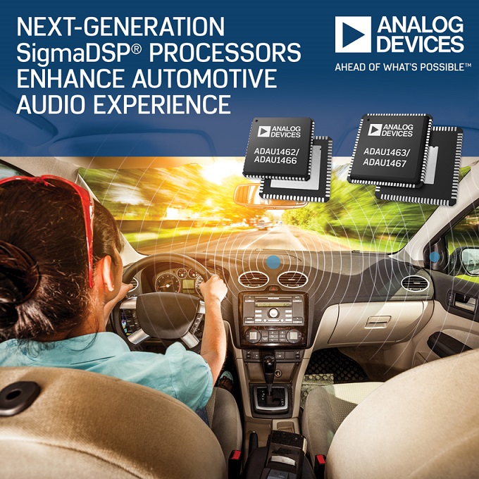ADI가 출시한 ADAU166 및 ADAU1467 SigmaDSP® 프로세서는 새롭고 향상된 오디오 알고리즘에 대한 수요 증가에 대응하기 위해 설계된 제품으로, 기존 제품보다 내부 프로그램 메모리를 3배, 내부 데이터 메모리를 2배 증가시켰다.