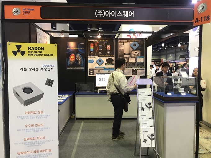 아이스퀘어(http://www.radsense.co.kr/)가 10월 11일(수)부터 13일(금)까지 개최되는 ‘2017년 사물인터넷 국제전시회’에 참가하여 신속하고 쉽게 라돈 농도를 측정할 수 있는 가정용 라돈 측정기를 선보였다.