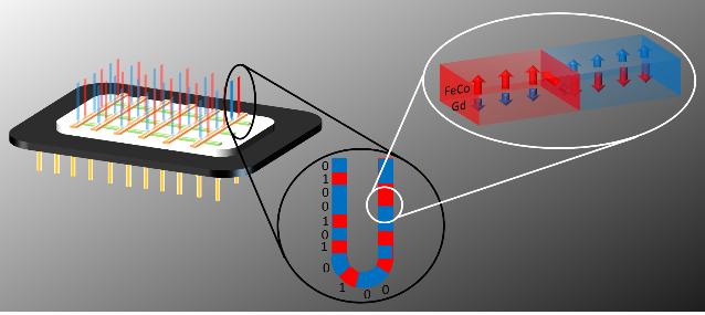 자구벽 메모리 연구는 대부분 ‘강자성체’ 물질을 사용하고 있으나, 연구팀은 ‘페리자성체’인 GdFeCo*를 활용하여 특정조건을 만족할 경우 자구벽의 이동속도가 수 km/s(kilometers per second)까지 급속도로 빨라지는 현상을 발견했다.