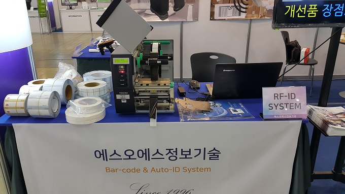 한국기계전에 참가한 에스오에스정보기술은 다양한 자동인식 시스템을 소개했고, 그중 도시바의 바코드 프린터(B-SX5T)는 직접 접촉을 하지 않아도 자교 인식이 가능하고, 인식 방향에 관계없이 ID 및 정보 인식이 가능하다.