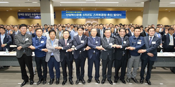 현대자동차그룹은 자동차부품산업진흥재단과 함께 지난달 25일 경기 화성시 남양연구소에서 이영섭 자동차부품산업진흥재단 이사장, 박광식 현대차그룹 부사장, 산업통상자원부 관계자, 150개 협력사 대표 등 230여 명이 참석한 가운데 ‘2017년 산업혁신운동 및 스마트공장 발대식’을 가졌다.
