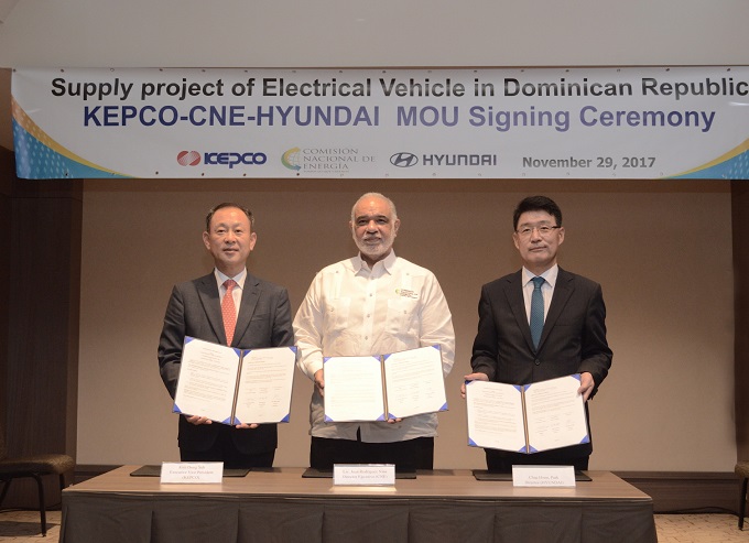 이날 MOU 체결에는 김동섭 한전 신성장기술본부장, 후안 로드리게스 니나(Juan Rodriguez Nina) 도미니카 CNE 위원장, 박채훈 현대차 중남미 지역본부장이 참석했으며 전기차 보급 및 충전인프라 구축사업에 대해 우선적으로 협상하고 에너지 신사업, 전력산업 분야에 대해 상호 협력하기로 했다.