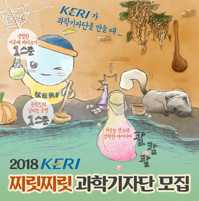 한국전기연구원(KERI)이 생생한 연구현장을 취재하고 첨단 전기기술을 활용한 콘텐츠 제작을 통해 과학기술정보 확산 및 과학 대중화에 앞장 설 ‘2018년도 KERI 찌릿찌릿 과학기자단’을 2월 8일(목)까지 모집한다.